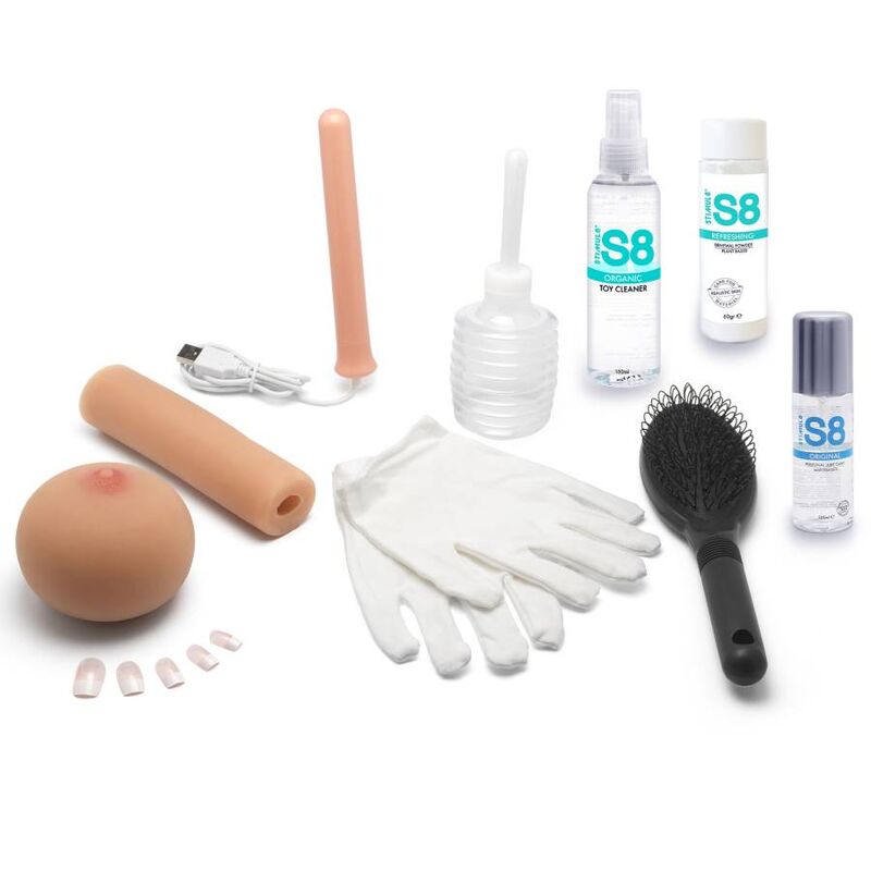 ¡Esta muñeca de lujo viene con una amplia gama de accesorios para que tu dama luzca y se sienta lo mejor posible en todo momento! En el paquete se incluyen dos conjuntos de lencería traviesa, limpiador de juguetes S8 Quality, lubricante S8 Silky, polvo S8 Renewal, guantes de algodón blanco para mover/manipular la muñeca, un juego de uñas de repuesto, una varita calefactora USB, un irrigador limpiador, un cepillo para el cabello y extensas instrucciones de cuidado. ¡Si quieres el trato real, este Bangers Babe es tu pareja perfecta y placentera! Tenga en cuenta que, debido a su tamaño y peso, este artículo no viene en un embalaje de producto convencional y, en cambio, se enviará en una caja de cartón discreta.