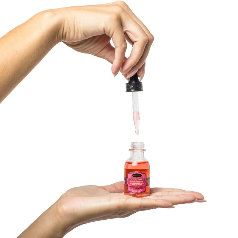 - ACEITE DEL AMOR SUEÑOS DE FRESA: Aceite de juego previo besable y cálido. Tamaño: .75 fl oz (22 ml).